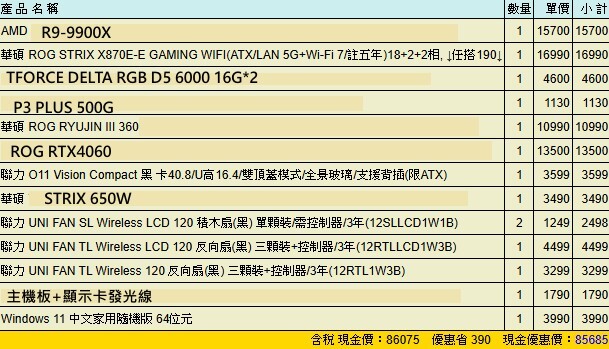 中壢R9-9900X+ROG 4060展示機 (O11 VISION COMPACT)