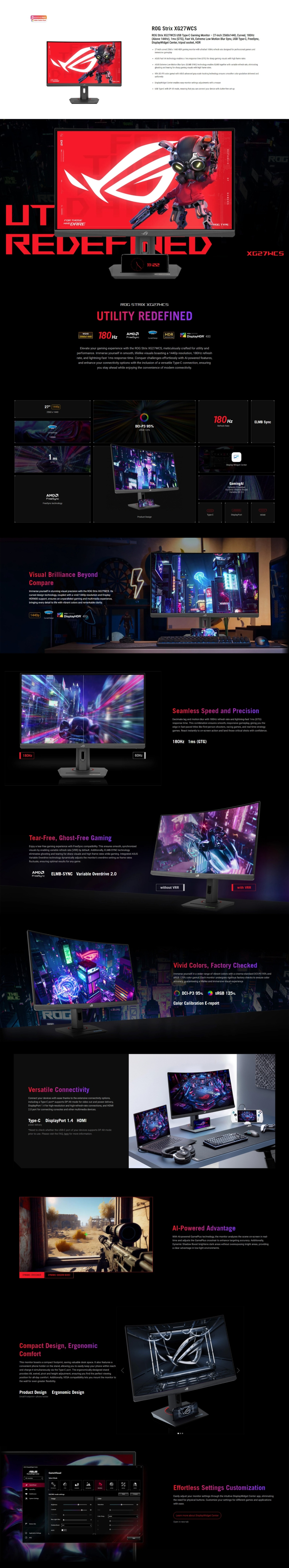 華碩 ROG Strix XG27WCS〈1H1P1C/VA曲面/1500R/180Hz/HDR400〉