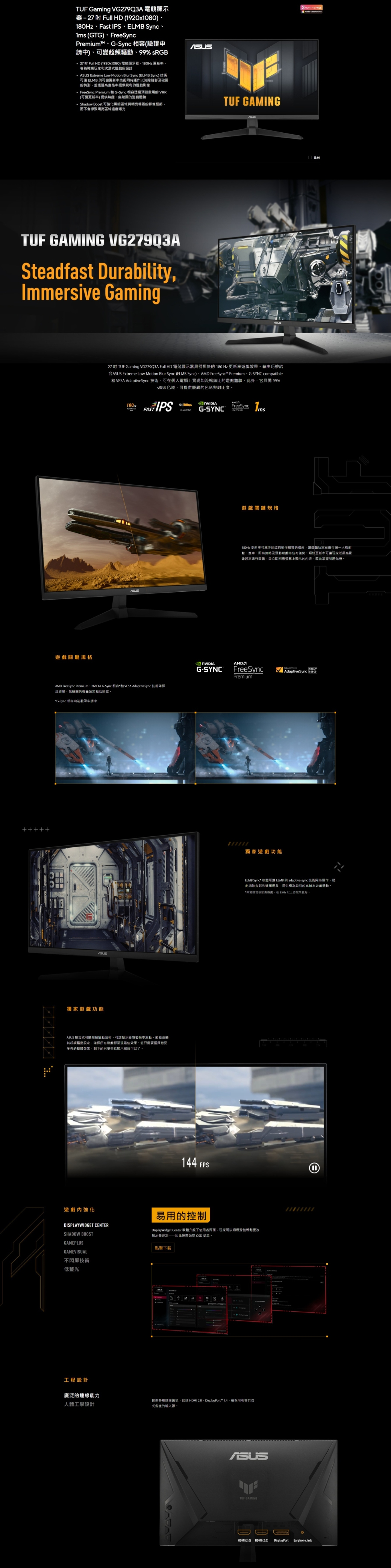 華碩 TUF Gaming VG279Q3A〈2H1P/IPS/180Hz/含喇叭〉