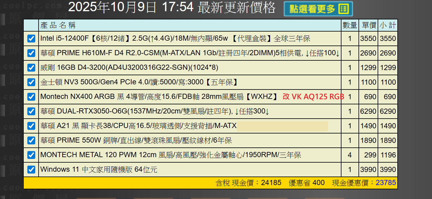 青埔 5-12400F+ RTX3050 展示機(3F-9